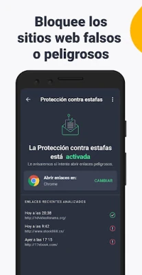Con AVG AntiVirus FREE 2026, su dispositivo se beneficia de un escaneo antivirus de vanguardia que examina aplicaciones, juegos y archivos para neutralizar contenido malicioso al instante. Navegue con total tranquilidad gracias a nuestra capacidad para detectar y bloquear sitios web fraudulentos y redes Wi-Fi comprometidas, asegurando que su información permanezca protegida. Además, salvaguarde su privacidad con el Baúl de Fotos cifrado, donde sus imágenes sensibles quedan ocultas de ojos curiosos, y proteja sus aplicaciones con un bloqueo personalizable mediante PIN, patrón o huella dactilar.