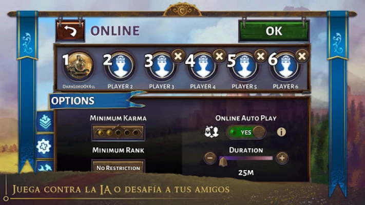 Carcassonne te ofrece infinitas formas de jugar, adaptándose a tu estilo preferido. Pon a prueba tus habilidades en solitario contra una Inteligencia Artificial avanzada que presenta cuatro niveles de comportamiento distintos, incluyendo el formidable Conquistador, diseñado para los estrategas más exigentes. Comparte la emoción con amigos en partidas locales mediante el modo "pasar y jugar", o desafía a jugadores de todo el mundo en apasionantes duelos en línea. Para perfeccionar tu estrategia, Twin Sails Interactive ha integrado herramientas exclusivas de la versión digital, como una vista aérea detallada, un innovador indicador de propiedad de campos y una lista de las losetas restantes para una planificación superior. Disponible en inglés, francés, alemán, italiano y, por supuesto, español, este título está diseñado para una inmersión completa.