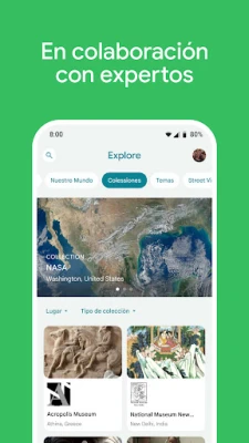 Sumérgete en un universo cultural sin límites con Google Arts & Culture, tu pasaporte directo a los tesoros, narrativas y el vasto conocimiento de más de 2.000 instituciones culturales repartidas en 80 países. Descubre las fascinantes crónicas de nuestra herencia global, desde el legado de las sufragistas hasta la majestuosidad de la Ópera de París, o sumérgete en el impresionante archivo visual de la NASA. Esta plataforma, cuidadosamente diseñada por Google, te ofrece un acceso sin precedentes al arte, la historia, las figuras emblemáticas y las maravillas que han moldeado nuestro mundo.